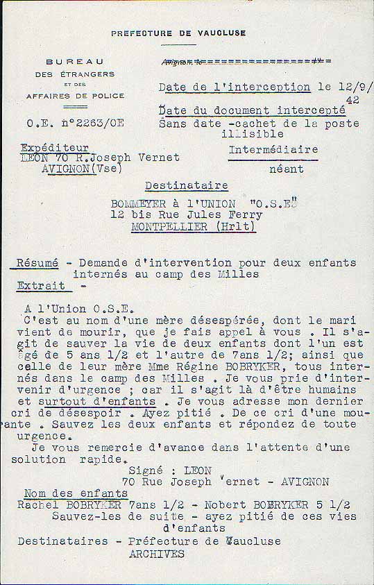 sur le point d'être déportés du Camp des Milles près de Marseilles