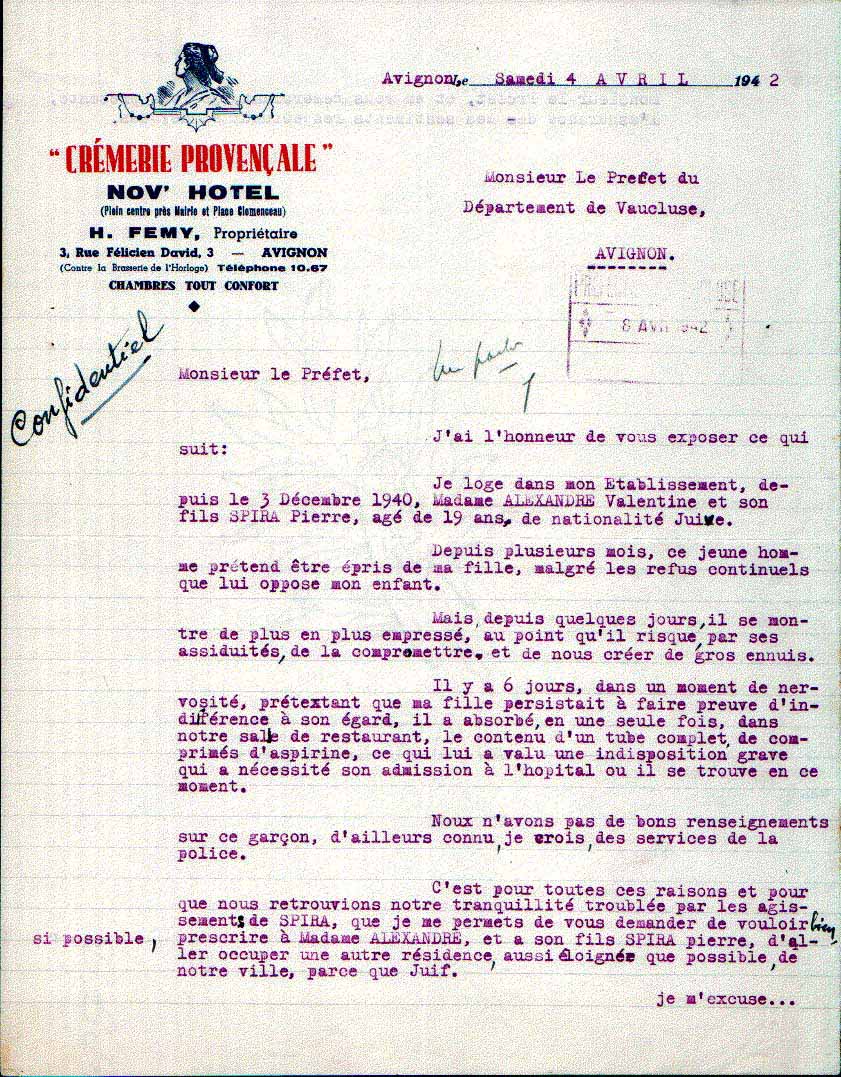 The Femys denounce a family lodging in their hotel and ask for their displacement "as far as possible... because they are Jewish."