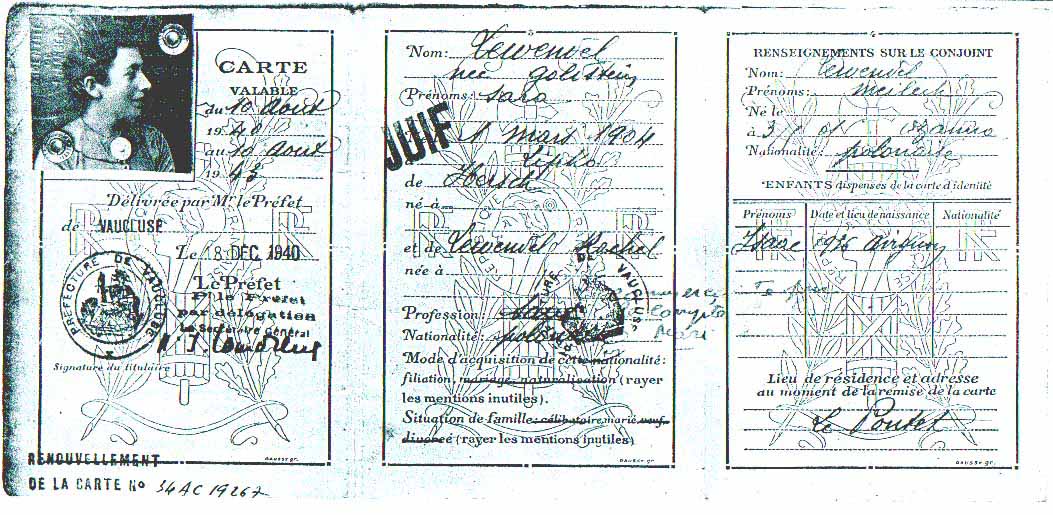 My mother's ID card is stamped with the word "Juif" (Jew, originally in red)